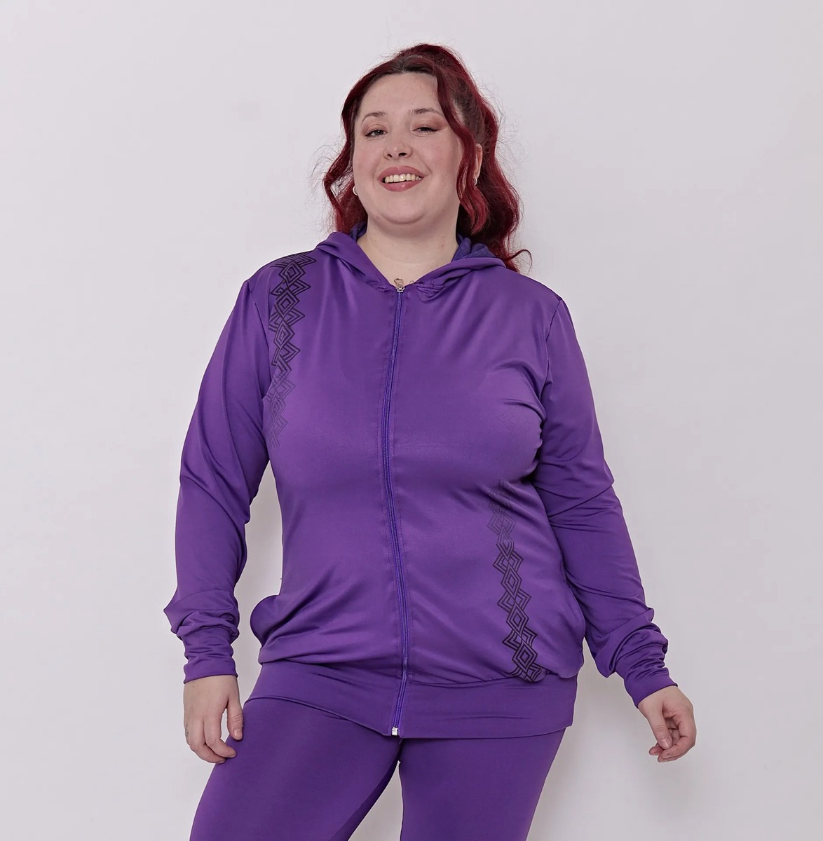 Nuestra campera deportiva larga Línea Geo es ideal para moverte cómoda y con un look bien canchero.