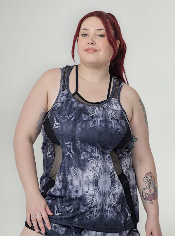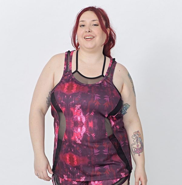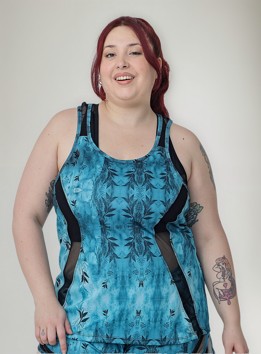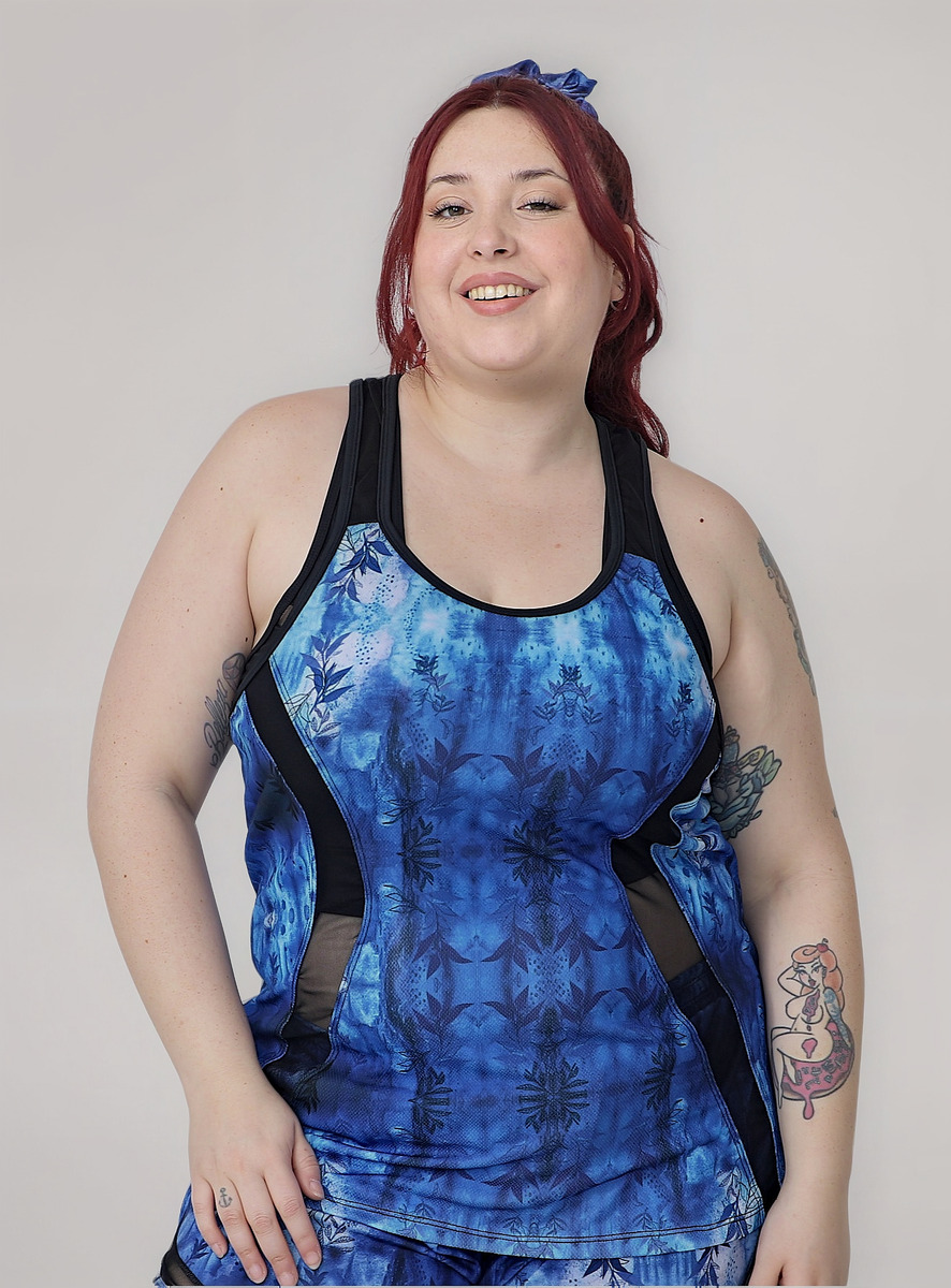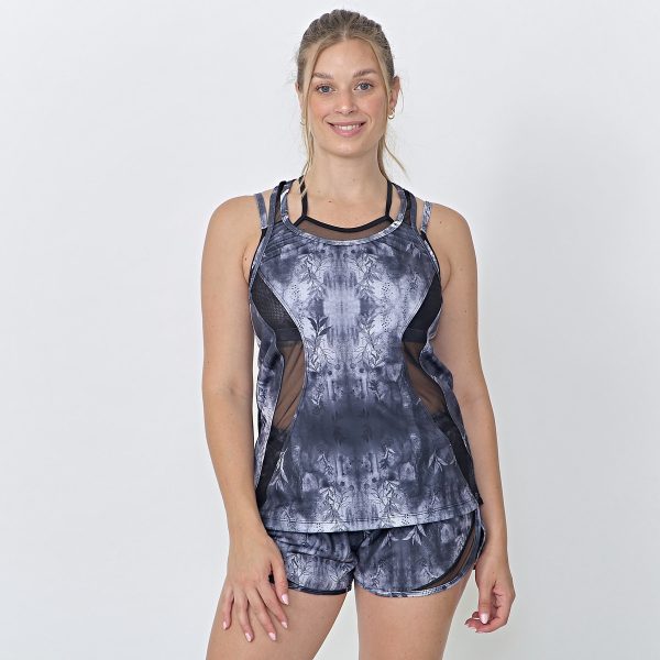 Musculosa De Dama Deportiva Estampada Recortes Transparencia