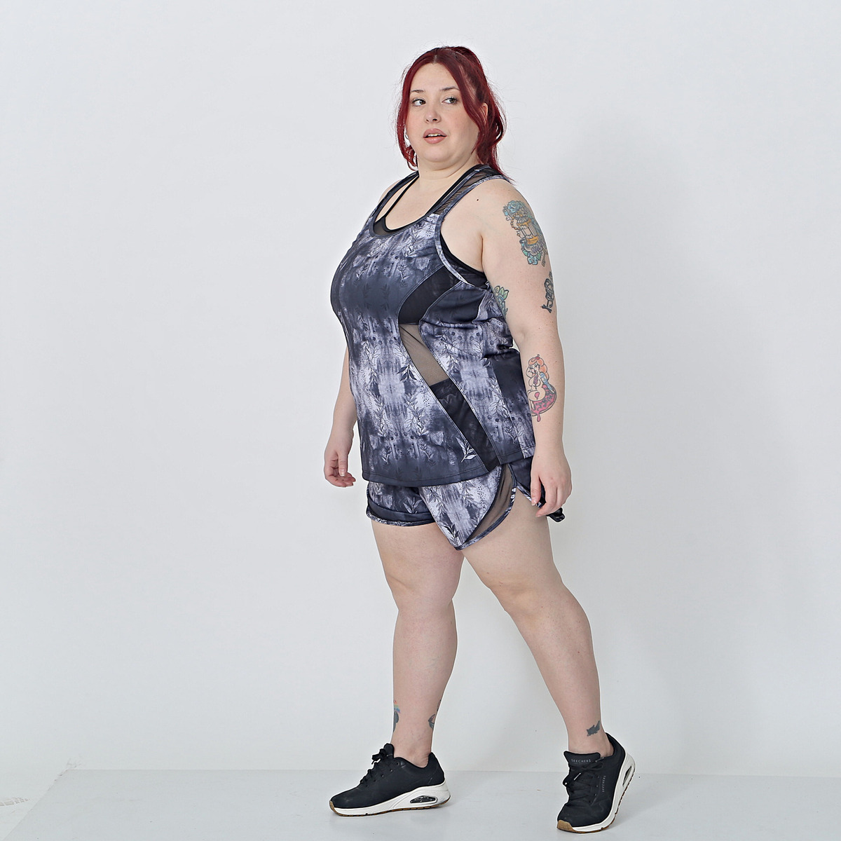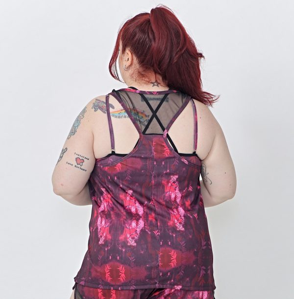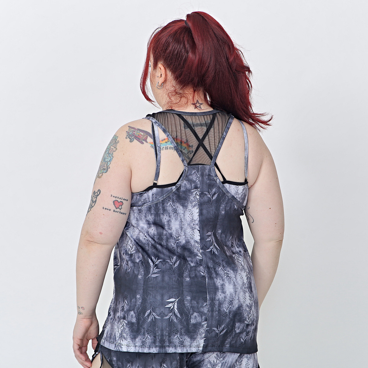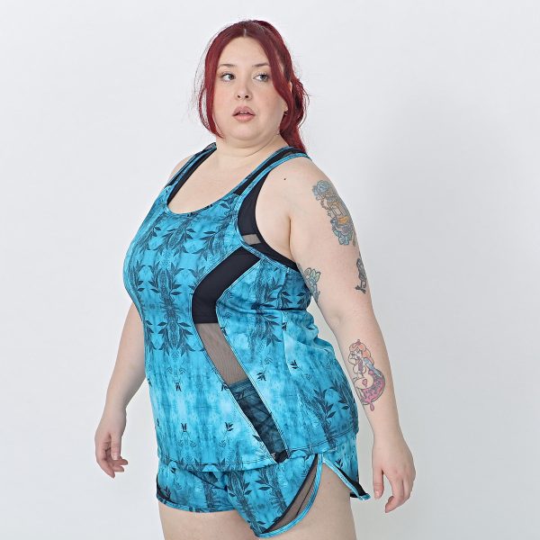 Musculosa De Dama Deportiva Estampada Recortes Transparencia