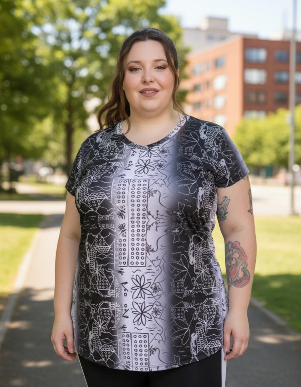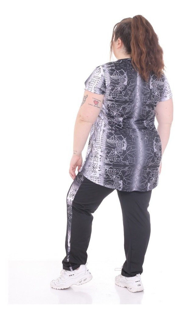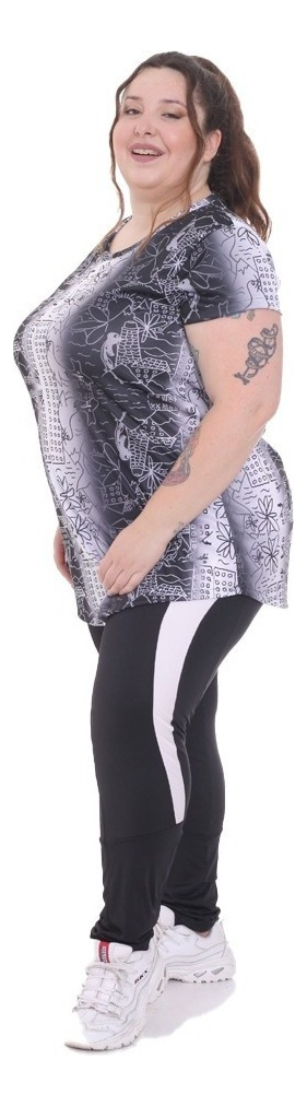 Remera Larga Con Manga Corta Estampada Talle Grande